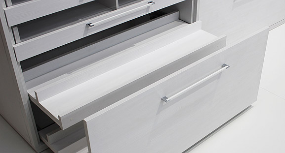 Puertas y Cajones de suave y silencioso deslizamiento, acompañados de una vastísima gama de accesorios propios, para cada una de las líneas de producto; hacen de nuestros muebles Occhipinti, buscadas expresiones de confort.